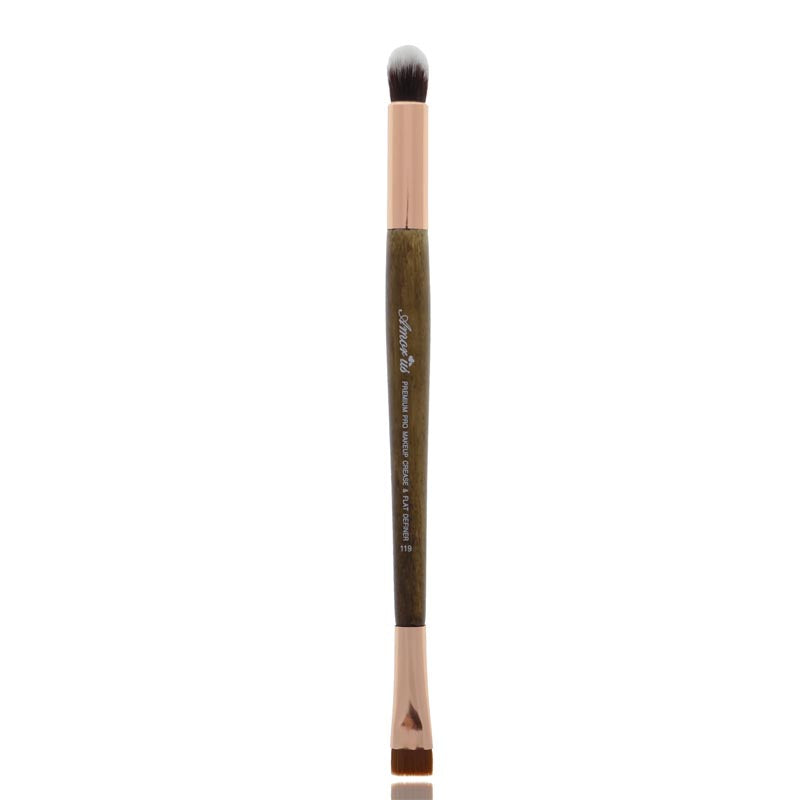 Brocha 119, defina el aspecto de sus ojos mientras aplica sombra de ojos en crema, líquida o en polvo con esta brocha de maquillaje vegana ultrasuave. Ideal para sombrear, difuminar la esquina exterior del ojo y delinear la línea de las pestañas inferiores.